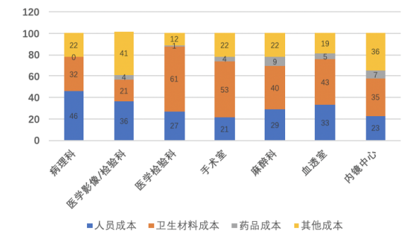 根據HIA發(fā)布的《中國首部公立醫(yī)院成本報告(2015)》,我國公立醫(yī)院各科室成本構成中,病理科人員成本占總成本比達到46%,顯著高于其他臨床科室;檢驗、影像科室這一指標分別為35%、27%。